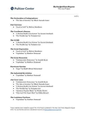 2019. You can find this and more educational resources at www.pulitzercenter.org/1619